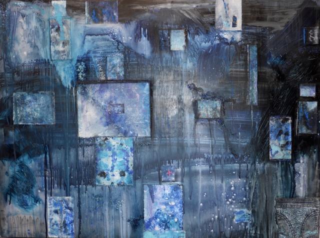 Genesis Mixed media on wood panel, canvas and handmade paper pieces, sand, acrylic media, etc.2016 $1800.00sold